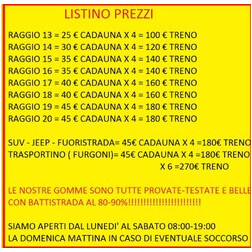 Varie marche e misure auto jeep moto furgoni gomme usatemontaggio equilibratura non sono ricoperteraggio 13 = 20 euro raggio 14 = 25 euroraggio 15 = 30 euroraggio 16 = 35 euro raggio 17 = 40 euroraggio 18 = 45 euro raggio 19 = 50 euroraggio 20 = 55 euroci trovi all?uscita della pontina casalazzara in via dei rutuli 56 (lt) aprilia 04011su pagine gialle - pagine bianche - facebook ? twitter ?instagram ? tumblr trattiamo anch le quantita?12 euro a gomma quantita? minima 20 pezzisuperati i 100 pezzi il prezzo e? di 10 euro a gommapossibilita? di ordinare anche il nuovo ma con pagamento...